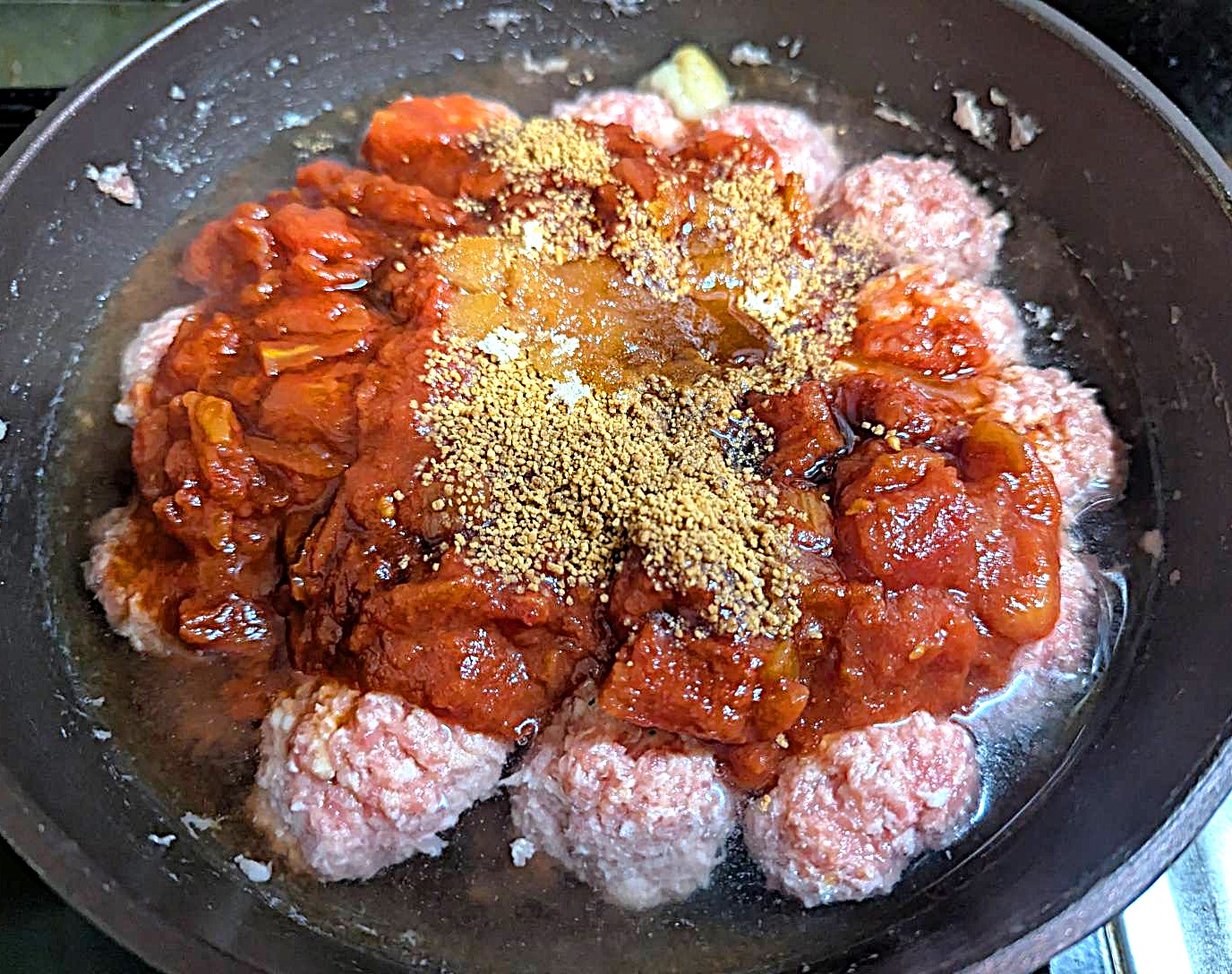 フライパン一つでOK!~ミートボールのトマト煮込み~④
